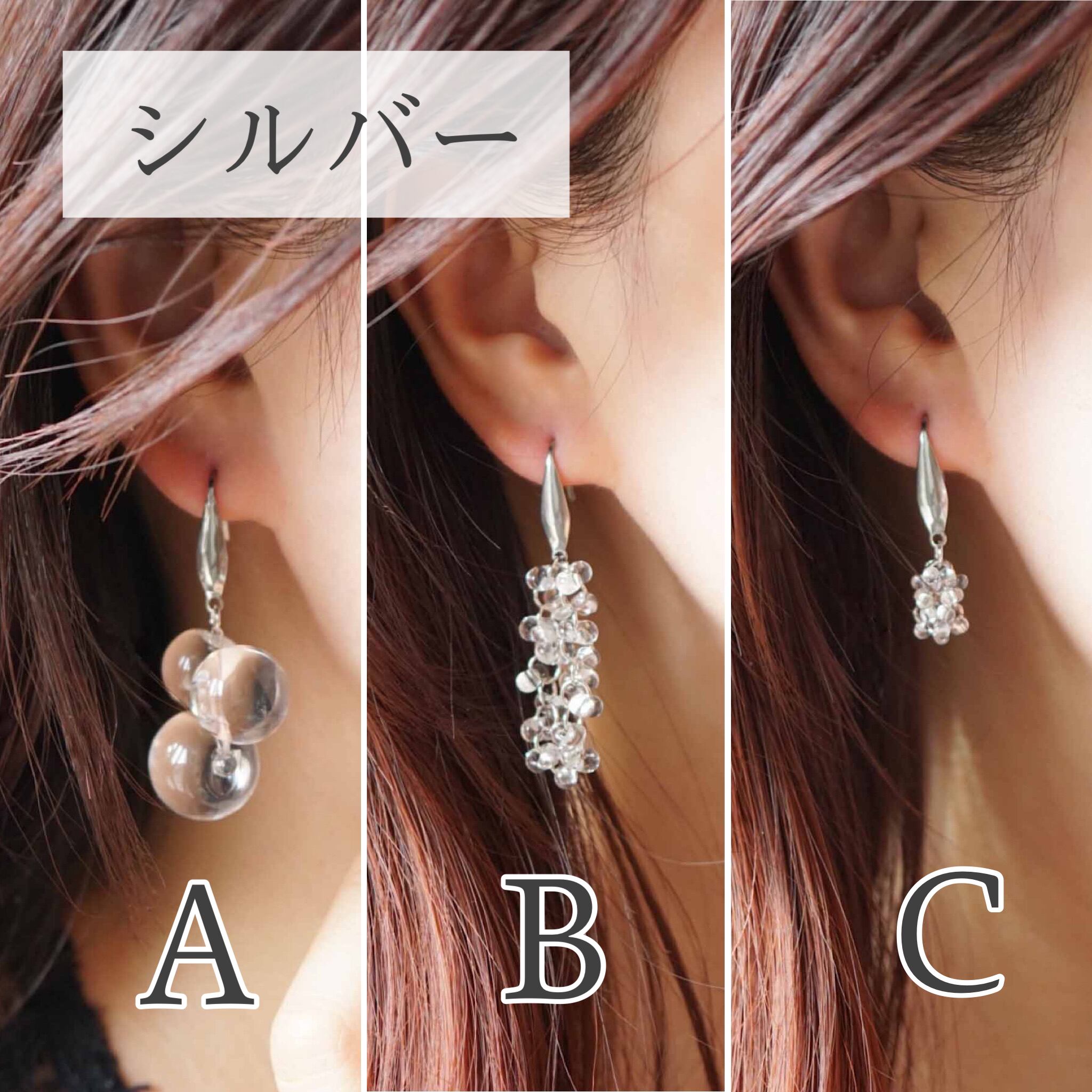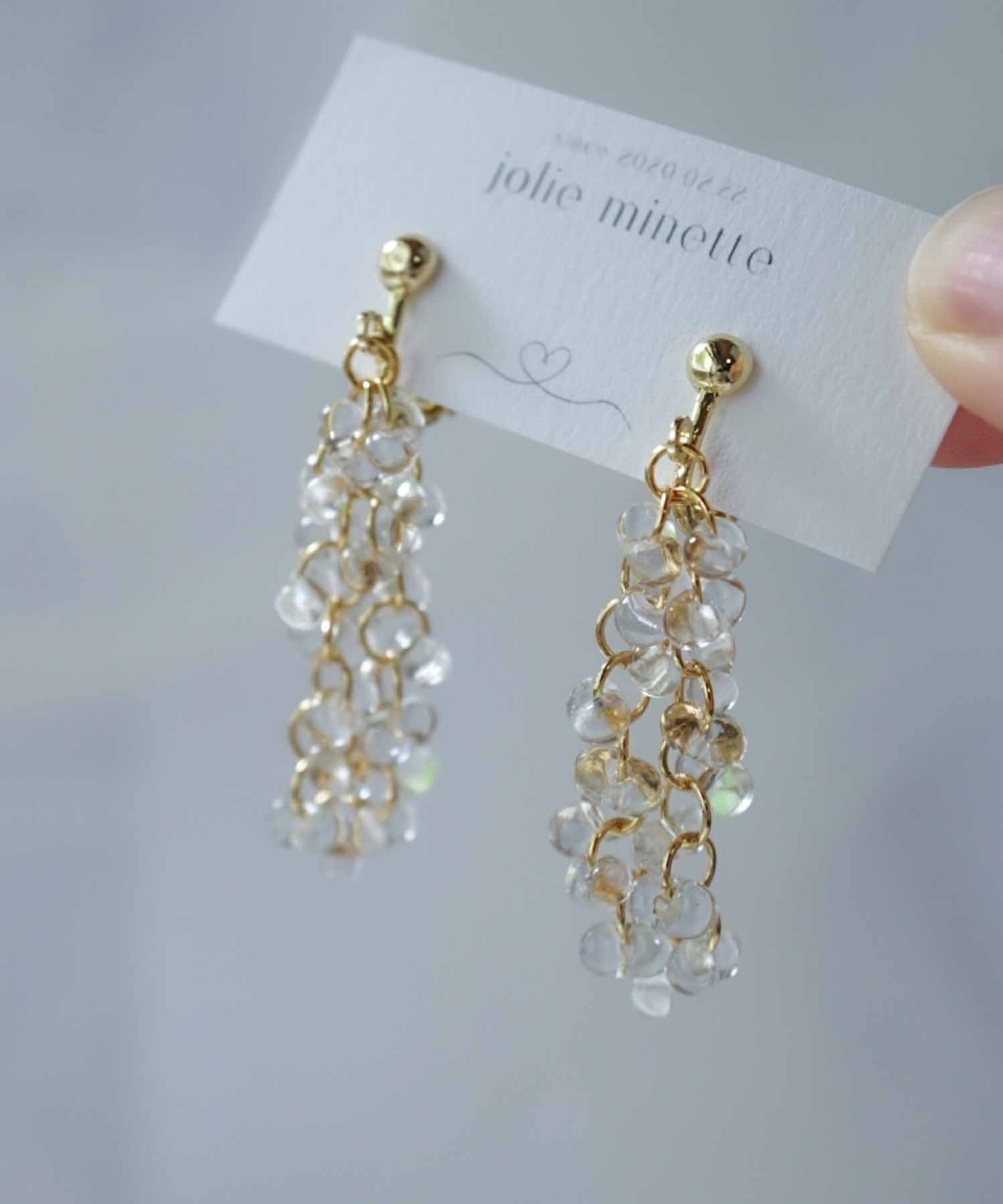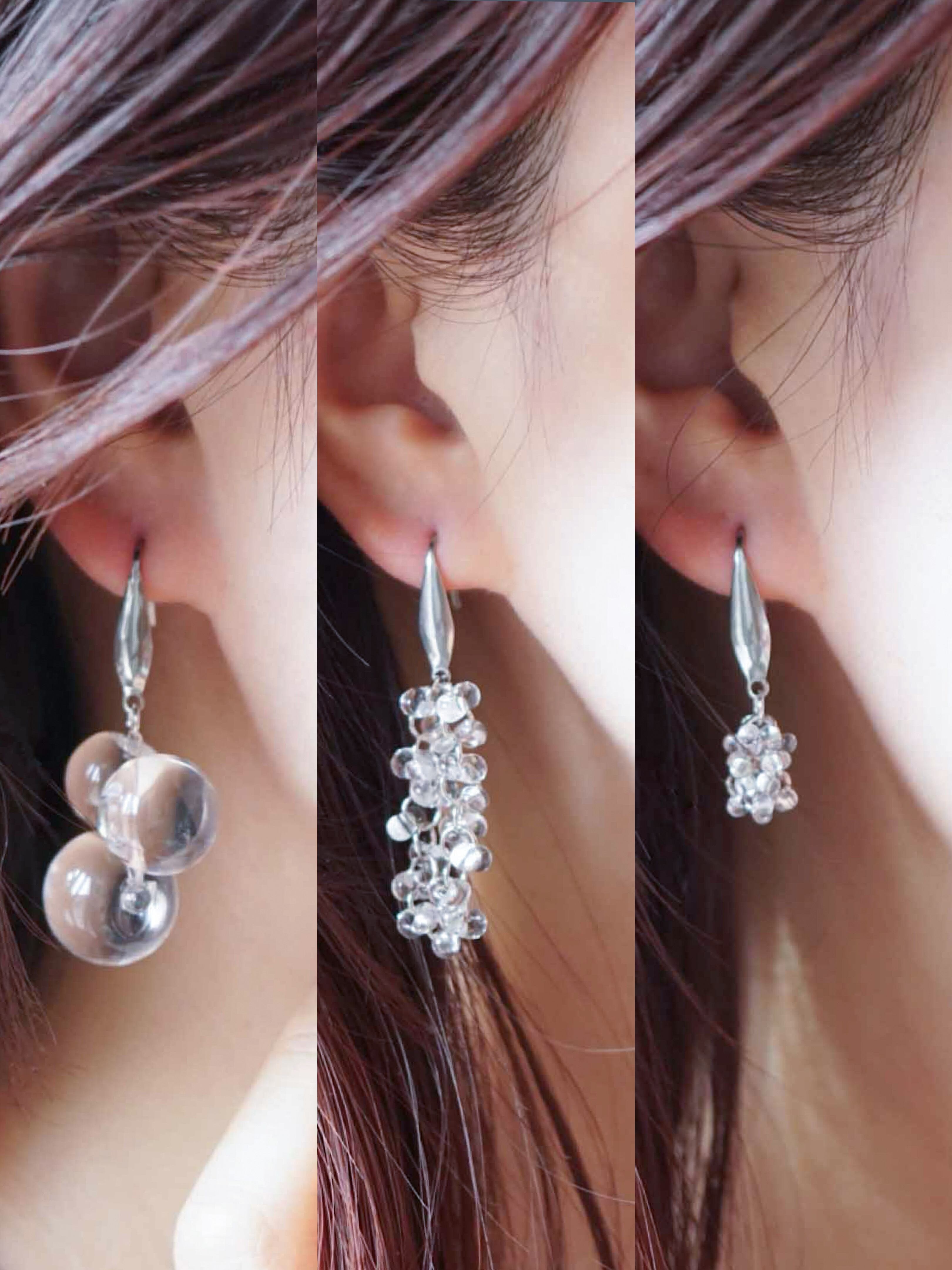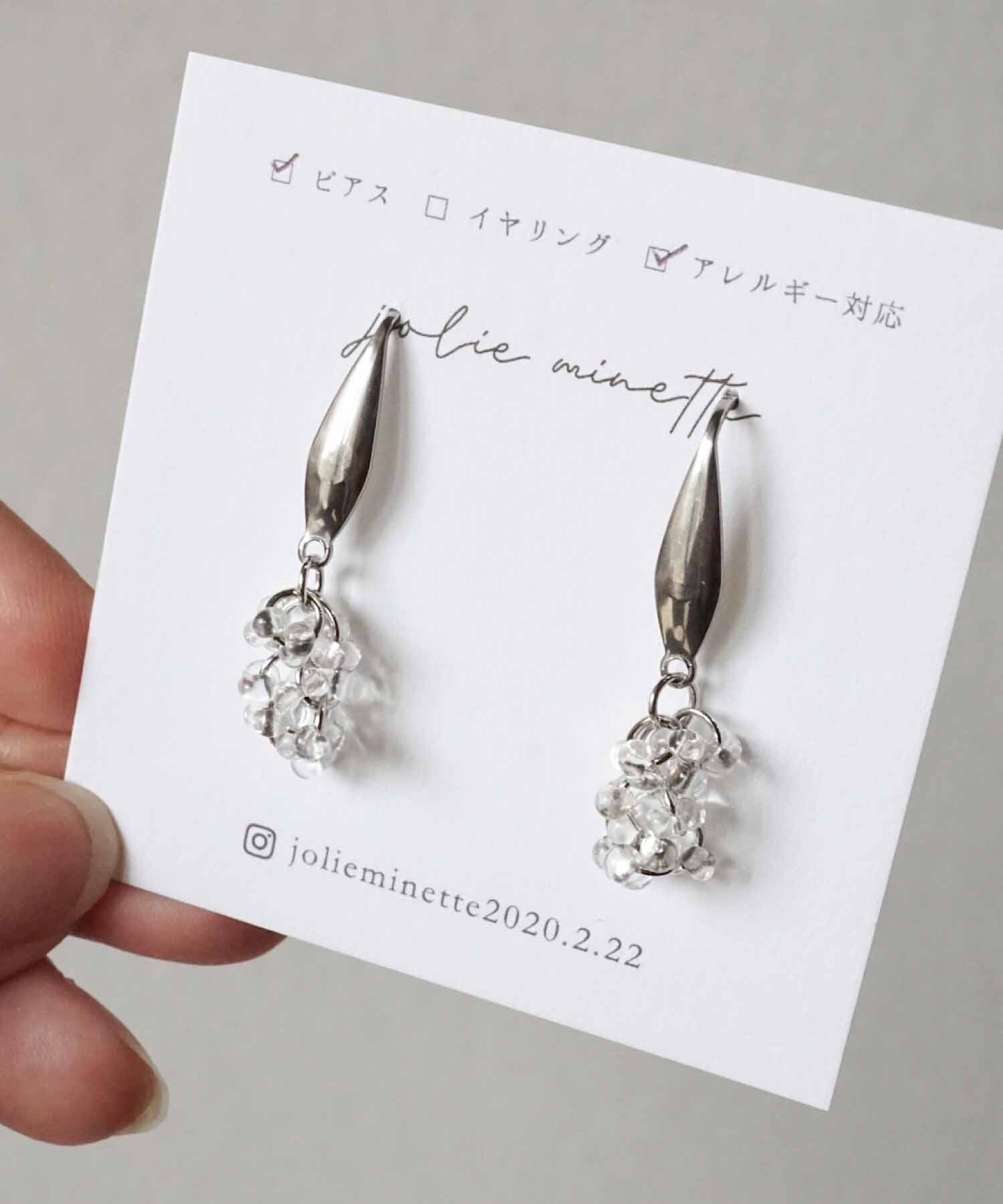 C … 小さなガラスビーズを繋げて小さくキラリとゆれるデザインに。