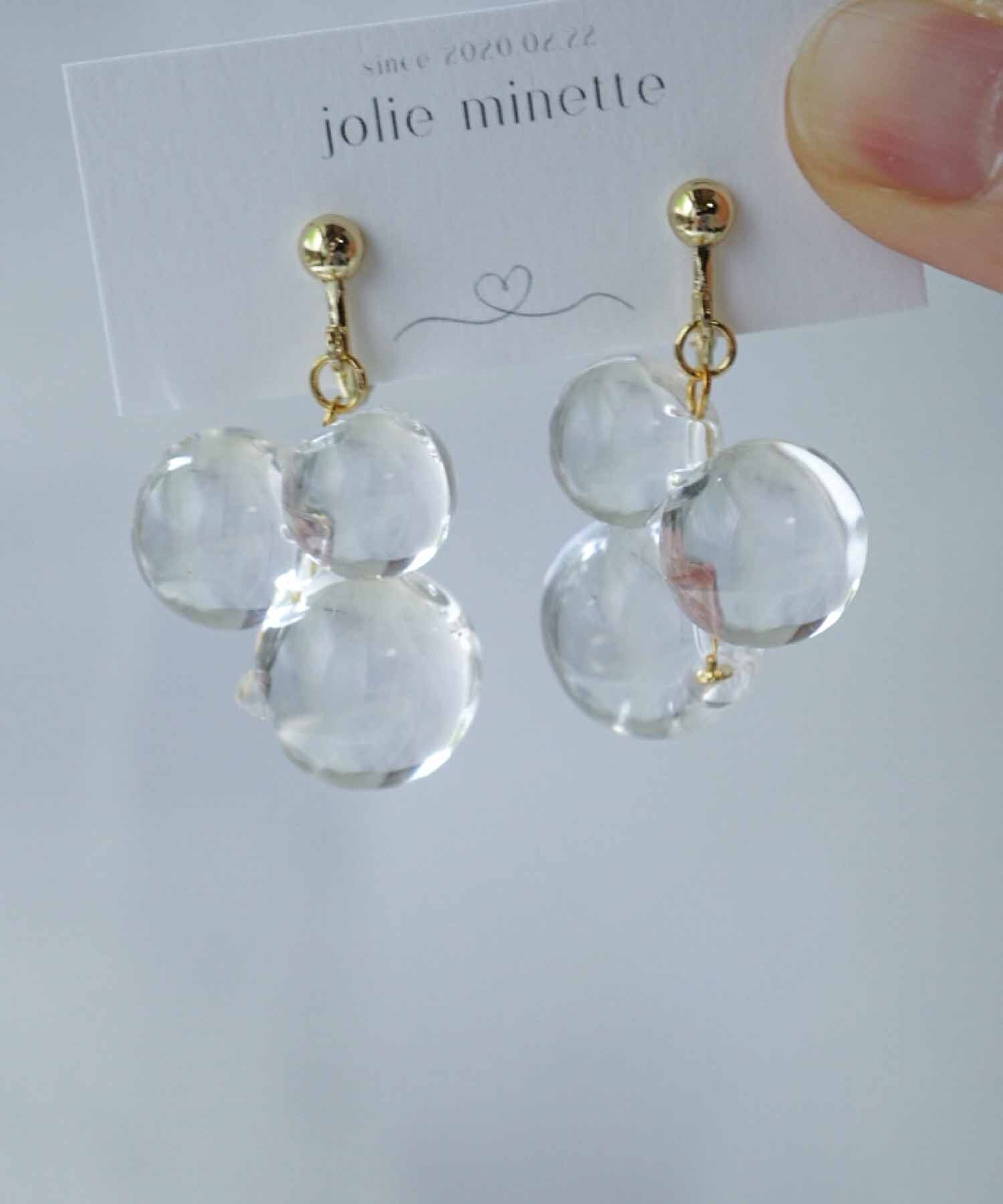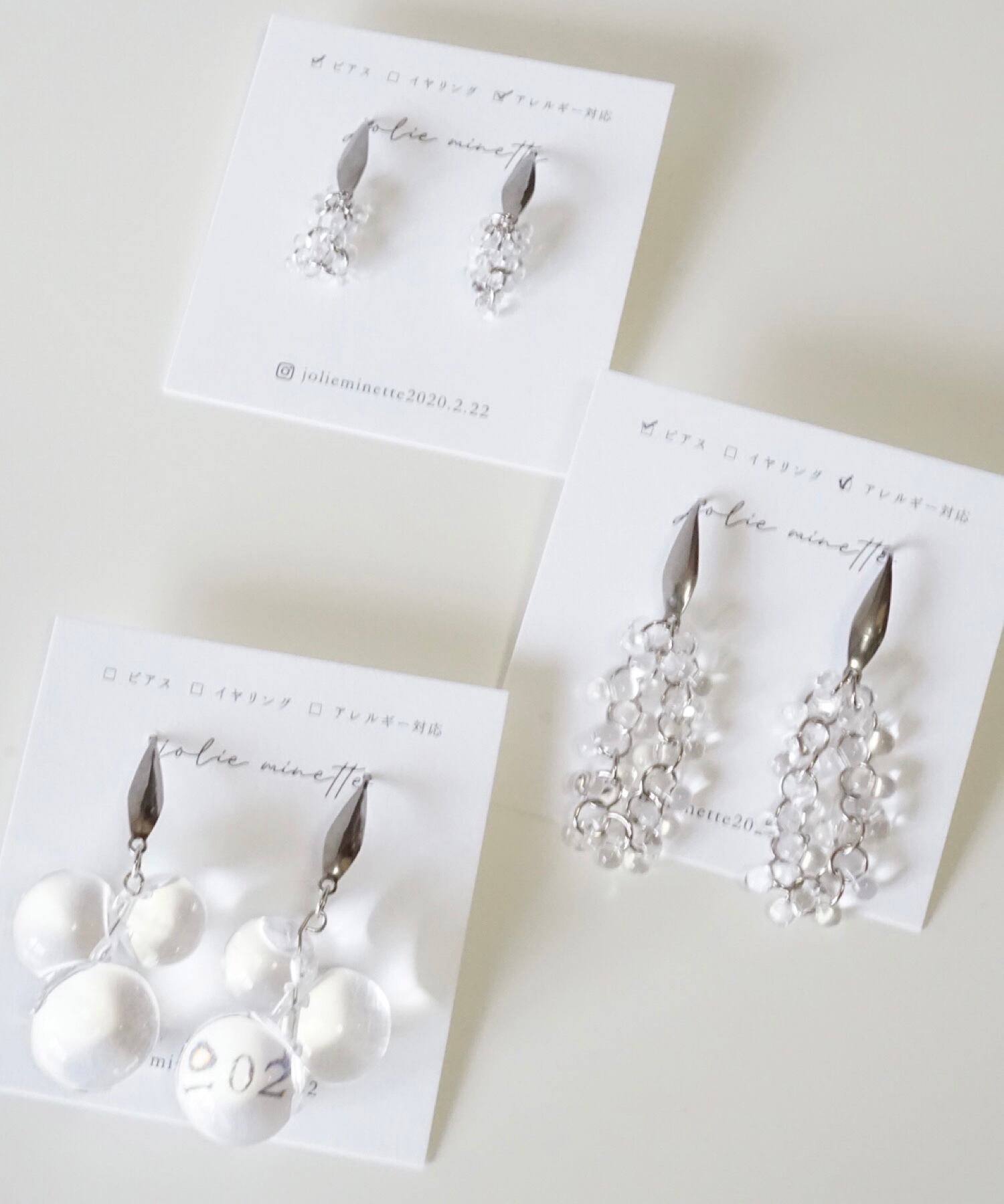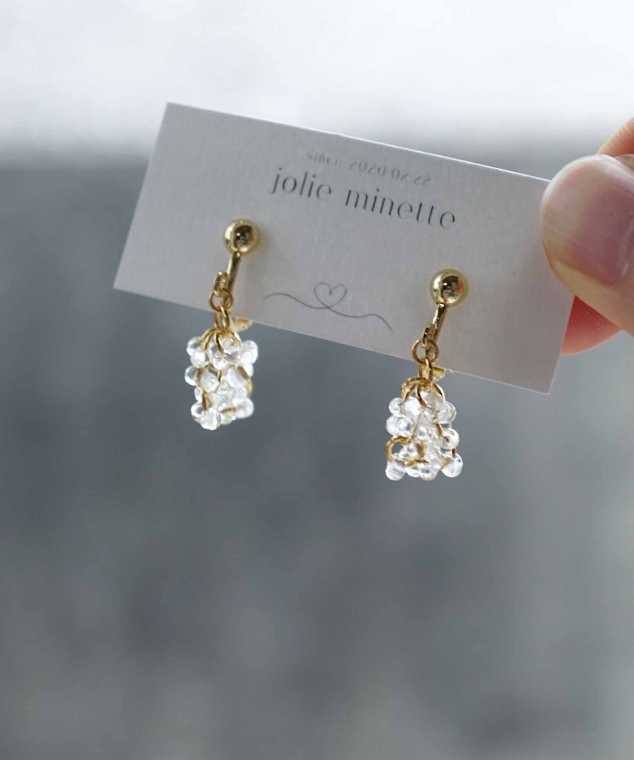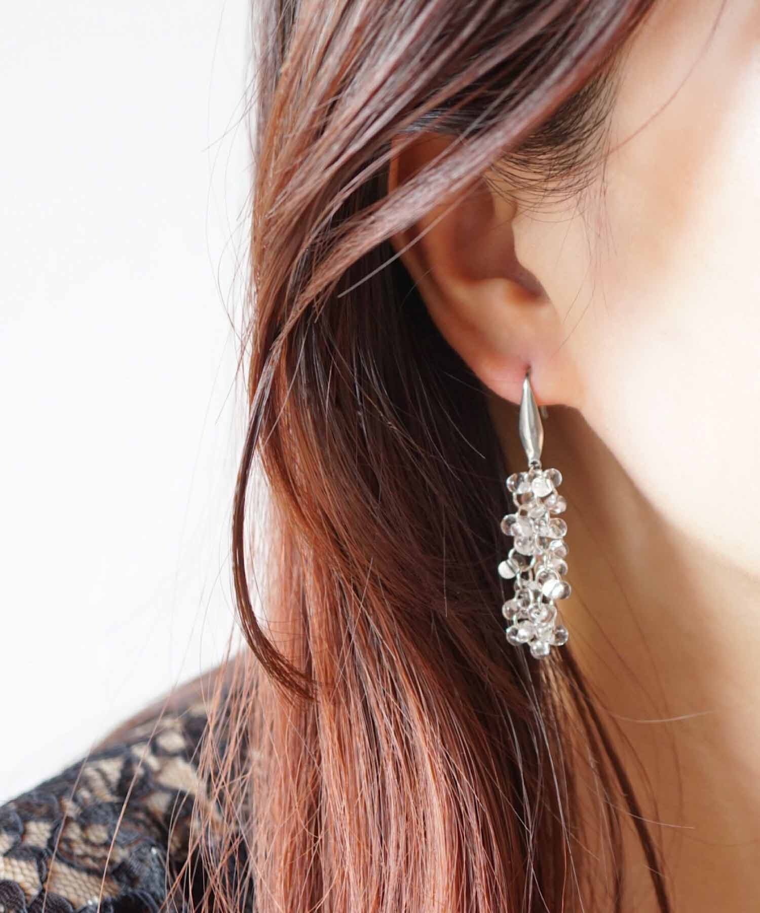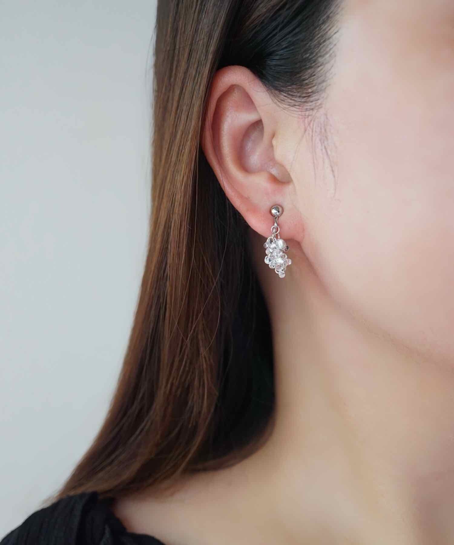 C … 小さなガラスビーズを繋げて小さくキラリとゆれるデザインに。