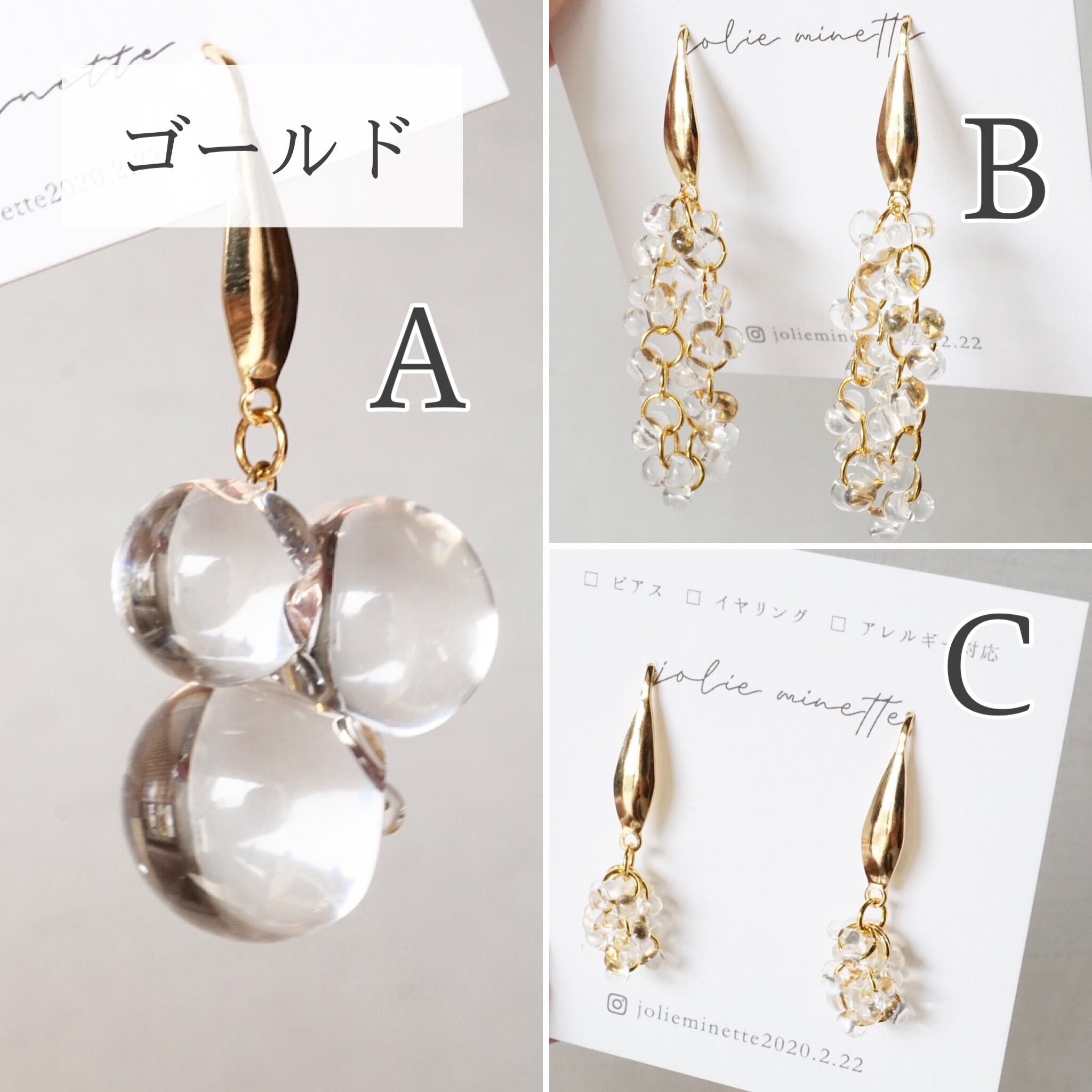 B …小さなクリアなガラスビーズが連なるデザイン。