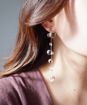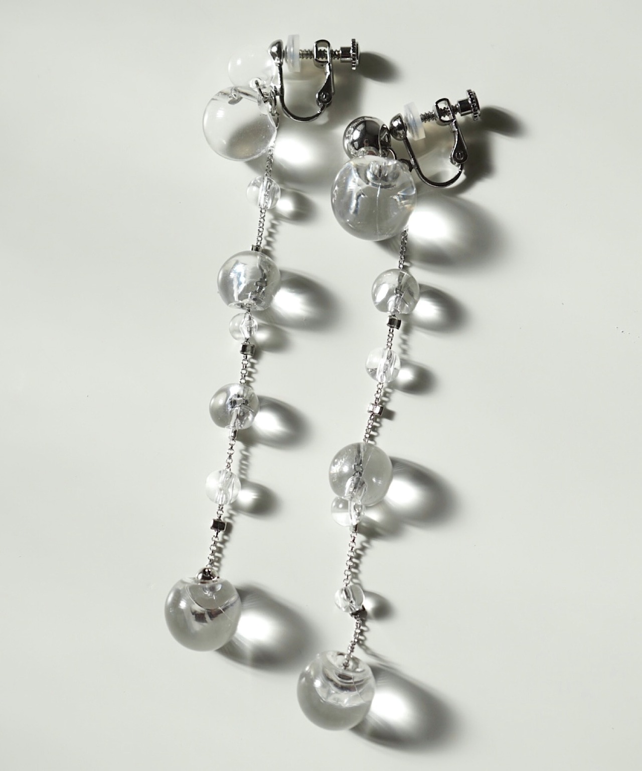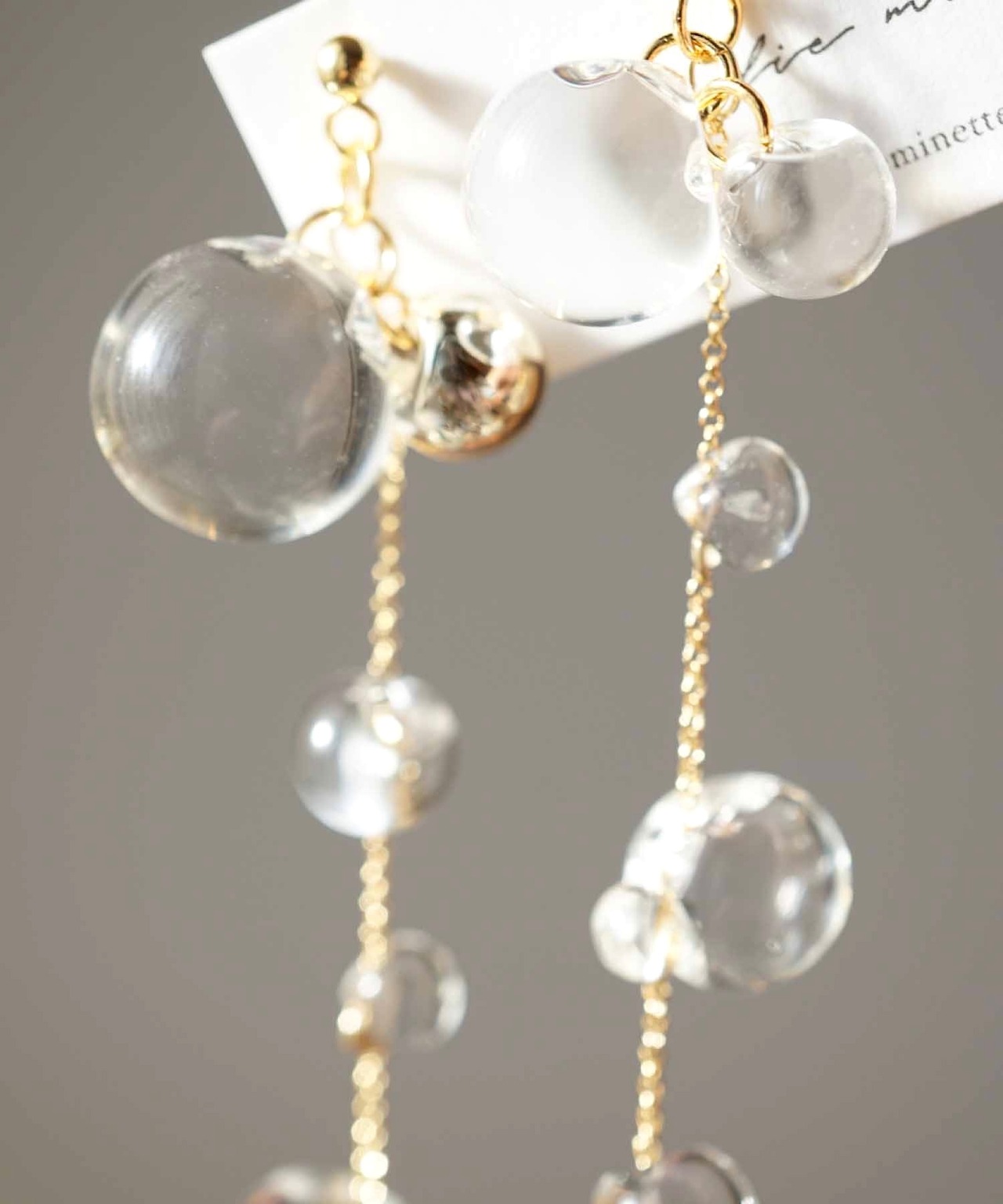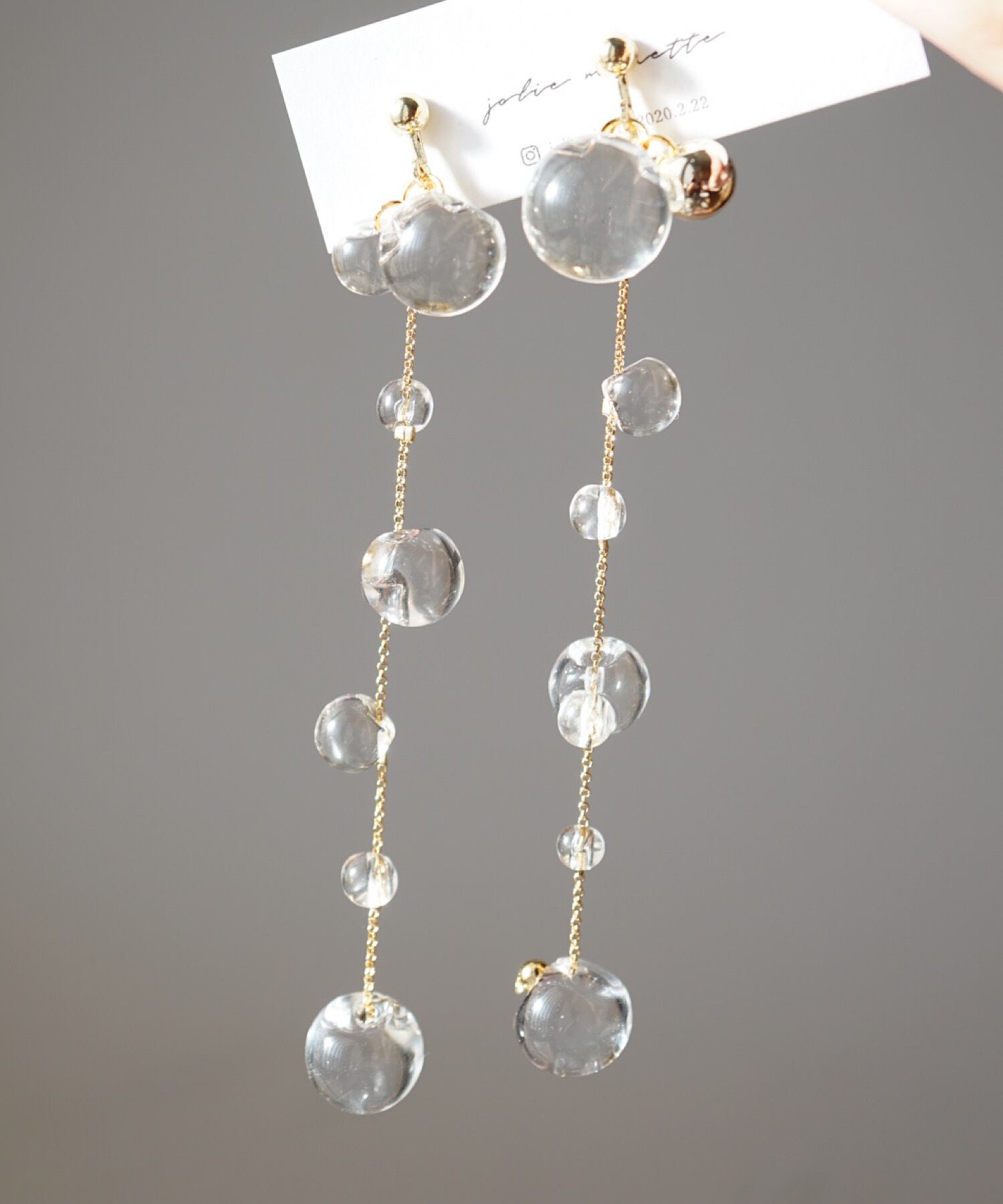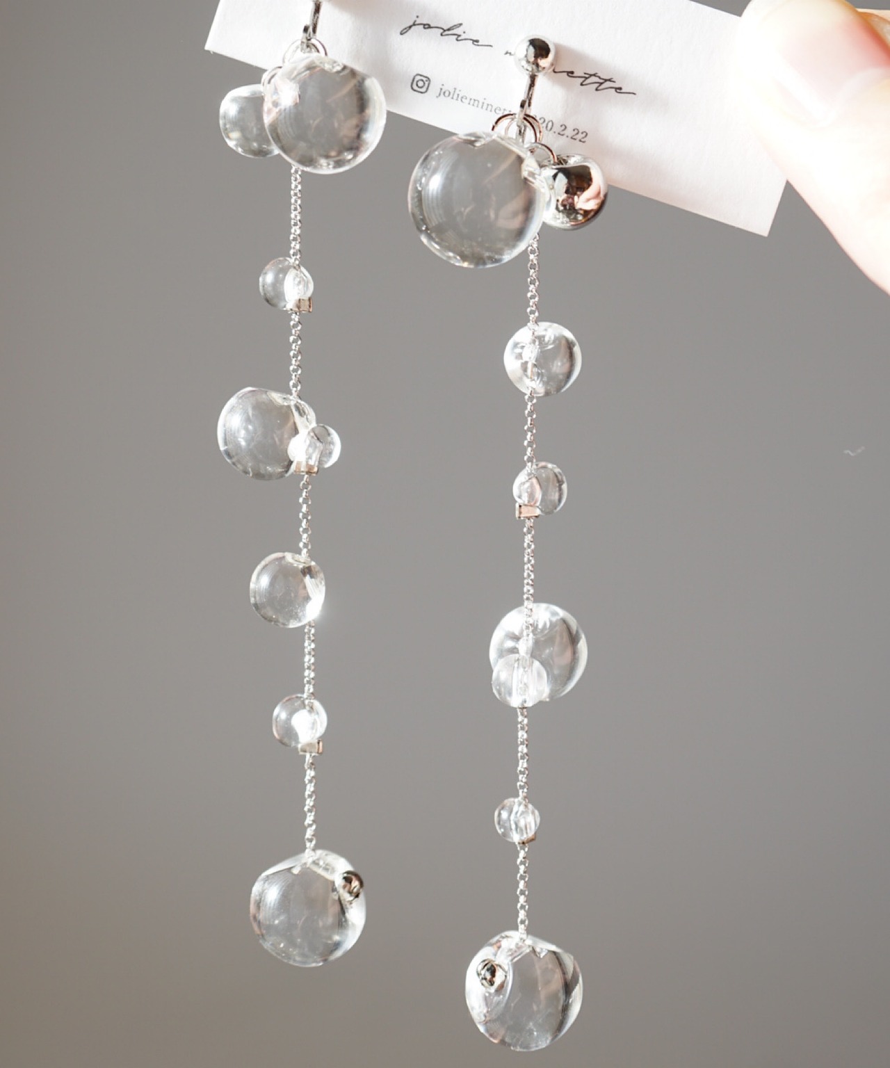 透明感のあるクリアビーズが、耳元でゆらゆらと揺れる水滴アクセサリー。